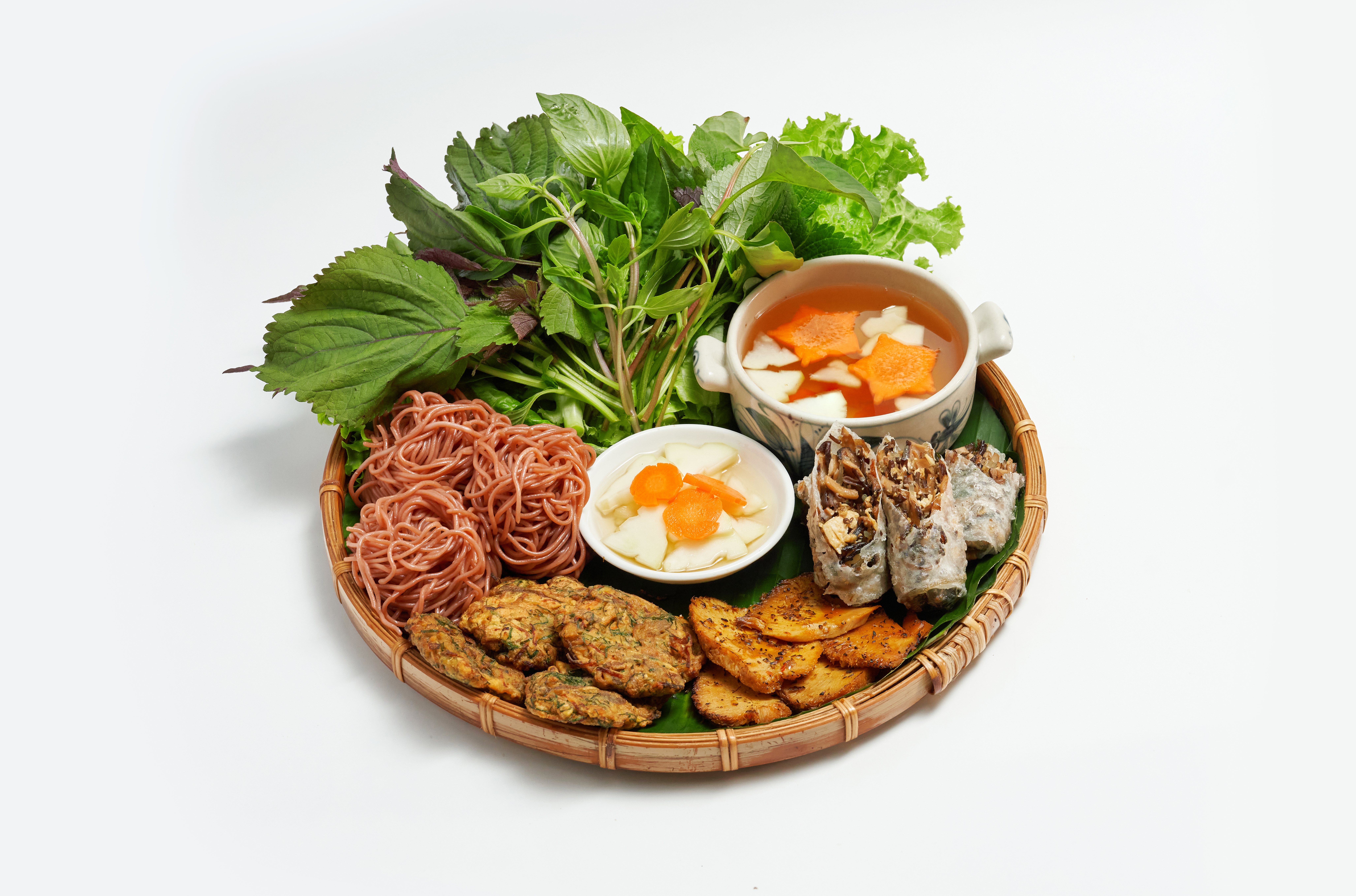 Tinh hoa ẩm thực đường phố Hà Thành, nỗi tiếng với hương vị hài hòa khó quên. Linh hồn của món ăn nằm ở nước chấm, phải đạt đến độ cân bằng hoàn hảo chua, cay, mặn, ngọt. Món chả được bếp chế biến từ nấm và đậu gà tạo nên một hương vị hoàn hảo ở phiên bản thuần thực vật.