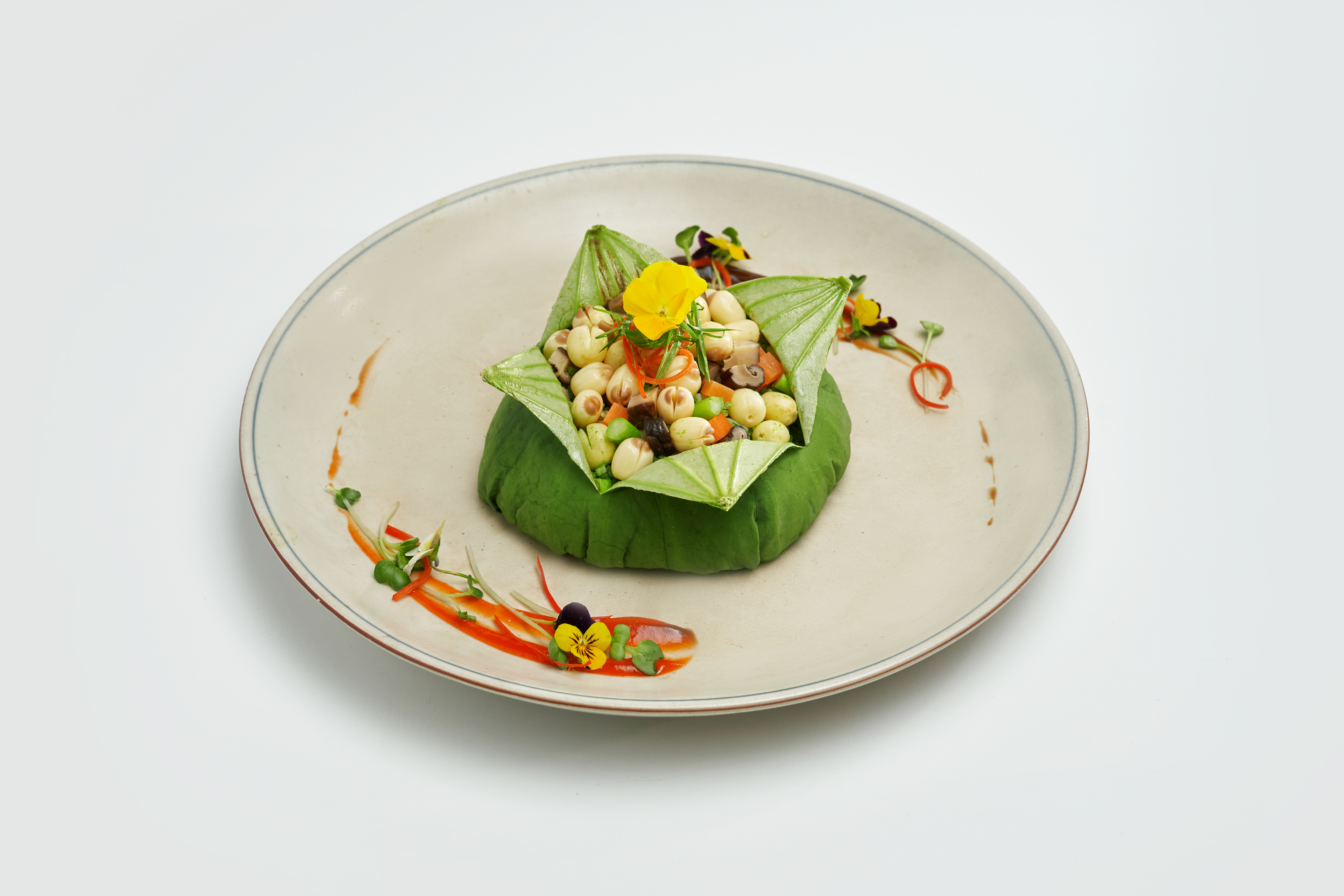 Một lựa chọn nhẹ nhàng, bổ dưỡng. Hạt sen béo bùi, nổi tiếng giúp an thần, ngủ ngon, đồng thời cung cấp lượng đạm và khoáng chất vừa đủ cho một khẩu phần. Cà Ri Xanh được nấu cùng rau củ, nấm, tinh chỉnh hài hòa giữa các tầng hương vị. Món ăn này là sự kết hợp hoàn hảo, mang lại bữa ăn dịu lòng và trọn vẹn.