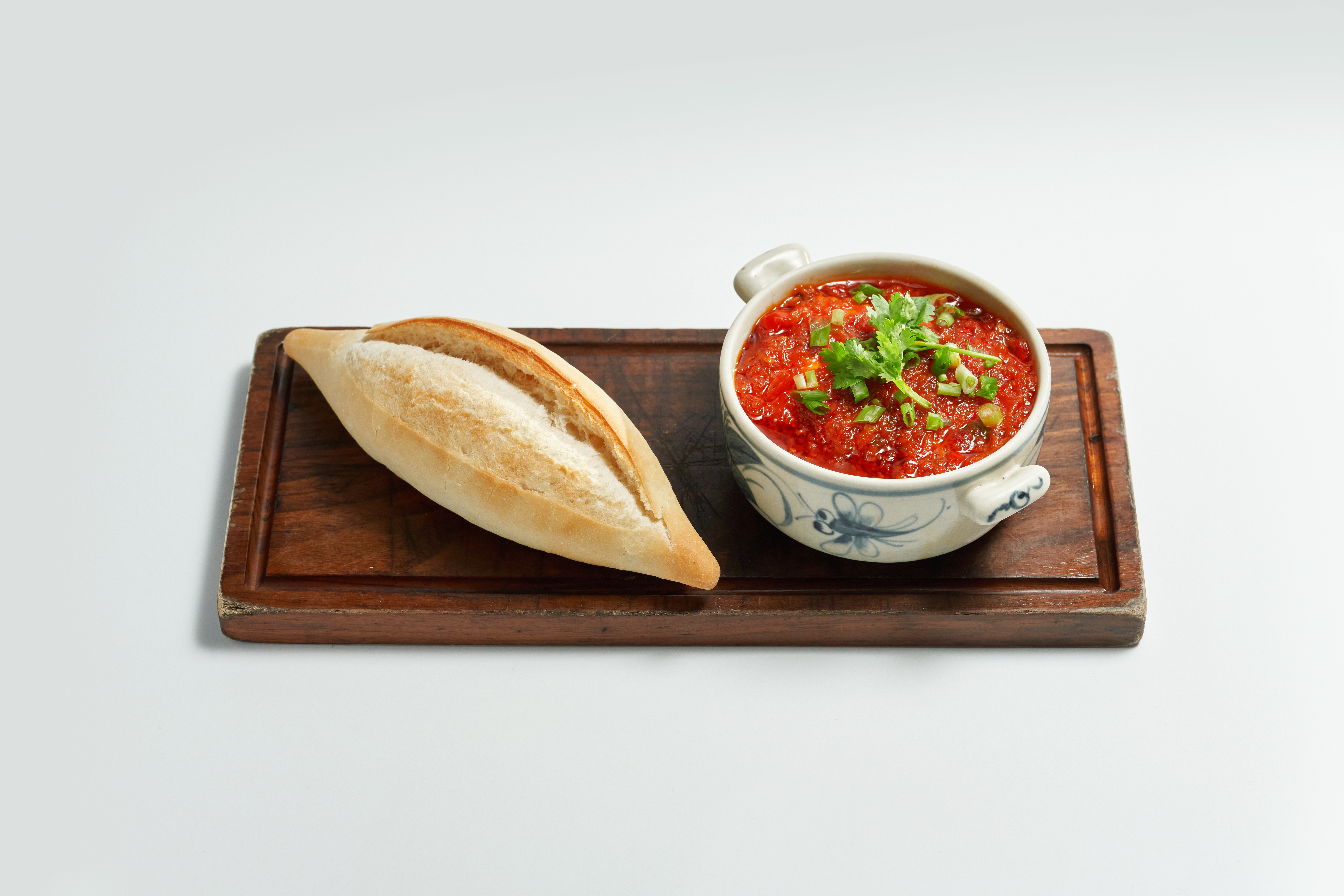 Thành phần: Bánh mì, đậu hũ tươi non, nấm hầu thủ, cà chua, hành, tỏi, ớt, dầu olive, ngò rí.
