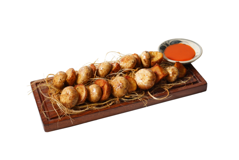 Thành phần: Khoai tây bi, nấm mỡ, sốt Vị Quê